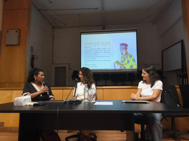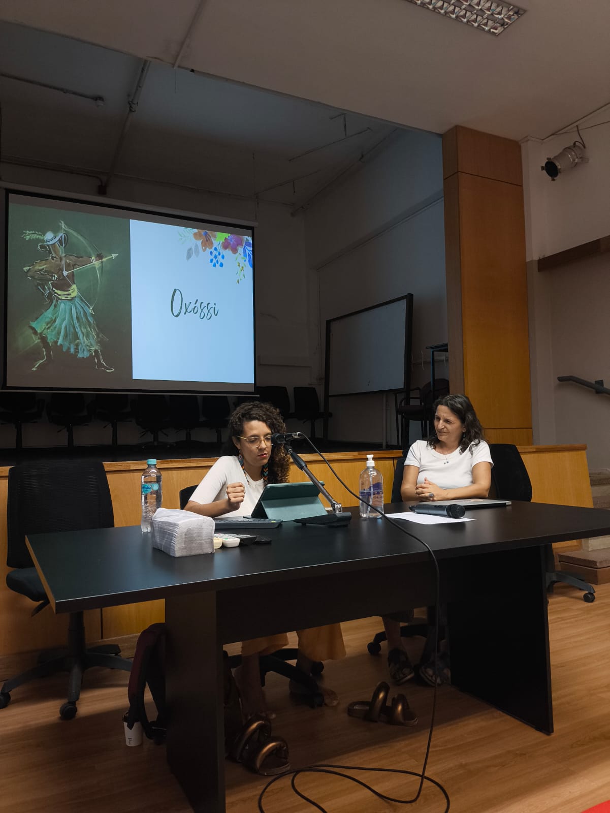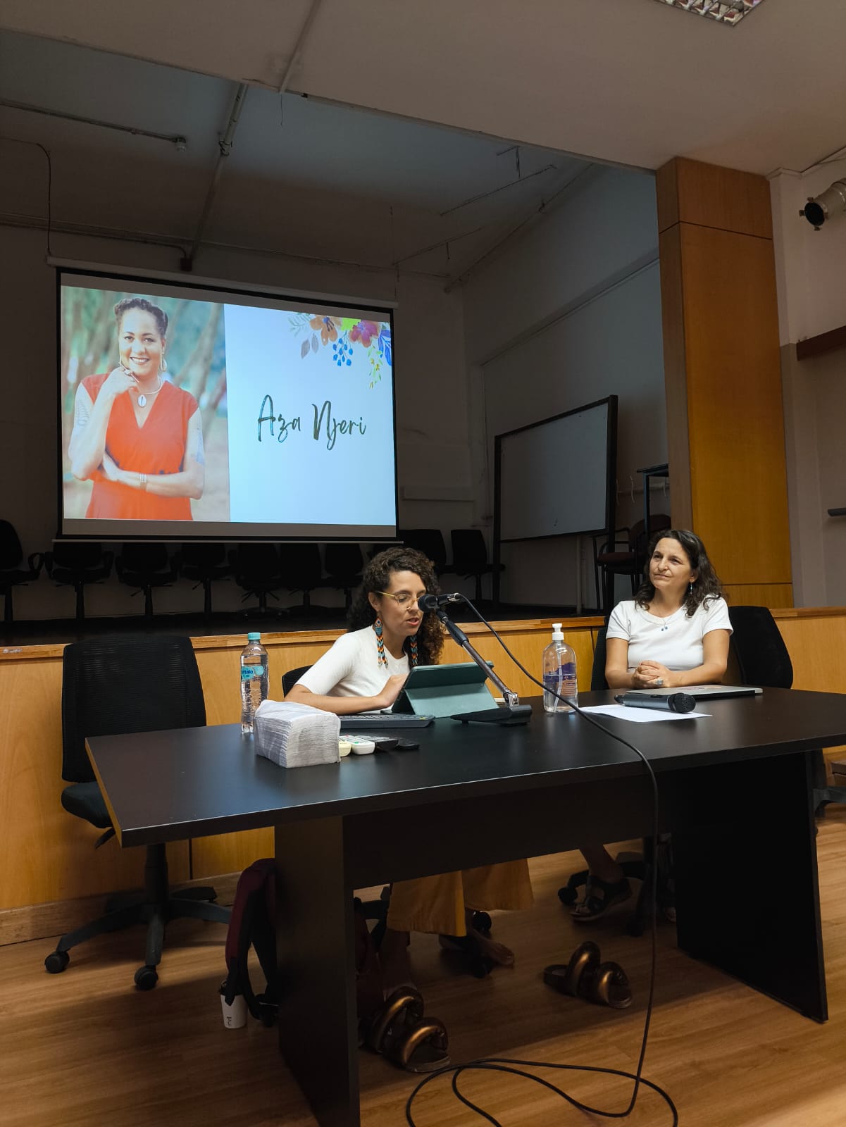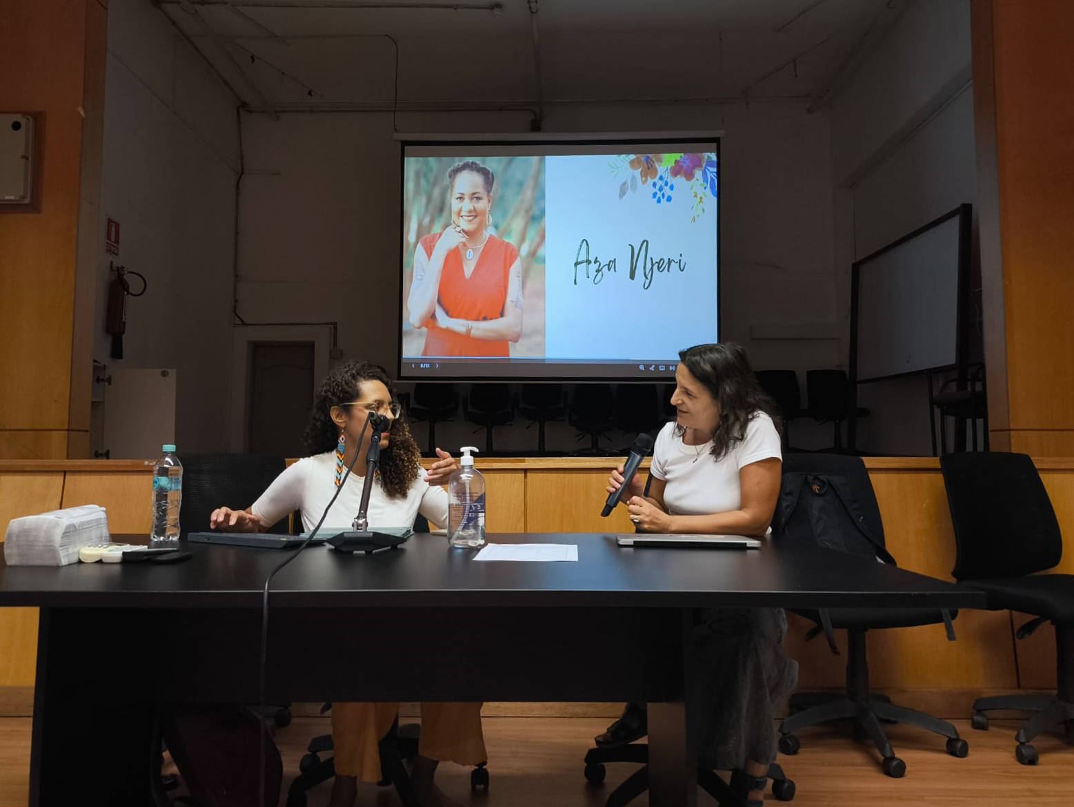 Ros dio la bienvenida al público, agradeció la presencia y presentó a Isabelle Carneiro como una persona profundamente vinculada a la cultura popular brasileña y a prácticas de resistencia ancestral. Destacó su condición de mujer negra “en movimiento”, atravesada por un recorrido de rescate y transmisión de saberes afroindígenas.