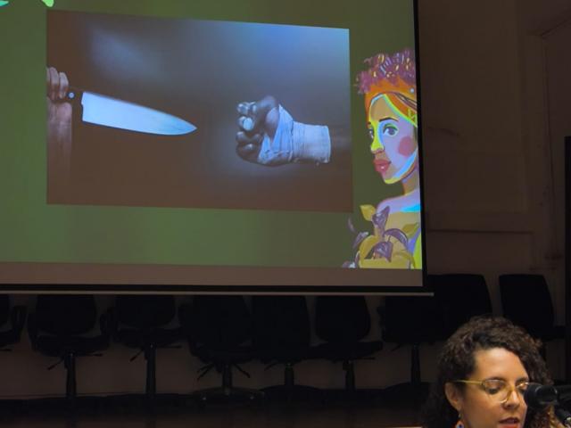 La expositora propuso pensar el giro epistemológico en la clínica a partir de la noción de encrucijada, no como un cruce de caminos excluyentes, sino como la apertura de múltiples posibilidades. Recuperó cosmogonías africanas, en particular la figura de Exú y el mito de Oxóssi, para pensar el conocimiento desde el movimiento, la relación y la inclusión. Sostuvo que limitar la clínica a referencias del norte global impedía una escucha integral de cuerpos, historias y sufrimientos atravesados por la colonialidad.