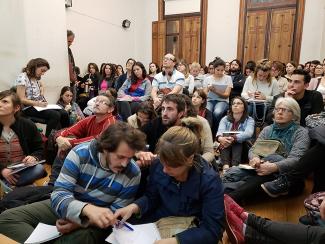 La misma contó con una nutrida y amplia concurrencia heterogénea que desbordó la capacidad locativa disponible en la sala. Participaron estudiantes de grado, posgrado, maestras, acompañantes terapéuticos, familiares de niños autistas, entre otros, quienes aportaron sus experiencias vinculadas al tema. La amplia asistencia de público da cuenta por sí misma del interés en la temática del autismo. La exposición del Dr. Camparo colmó las expectativas de los presentes.